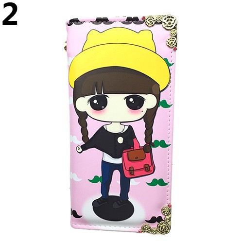 Jual Dompet Panjang Gambar Kartun Perempuan Lucu Dengan Resleting