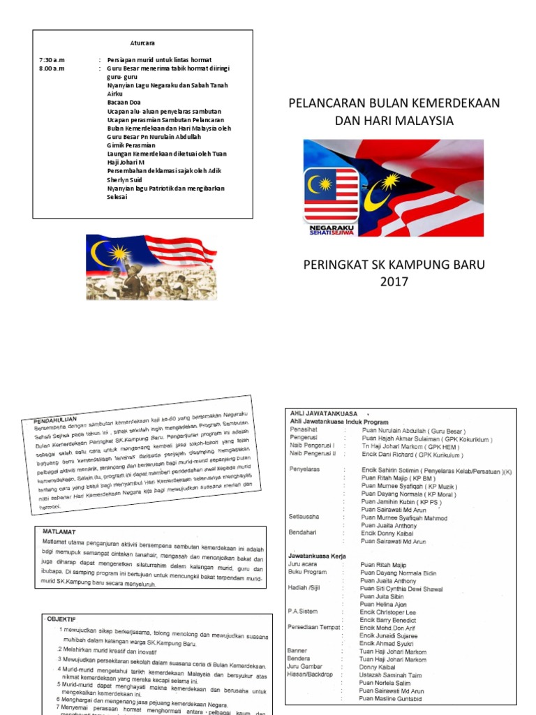 Kertas Kerja Sambutan Bulan Kemerdekaan Sk Skarok Ogos 2016