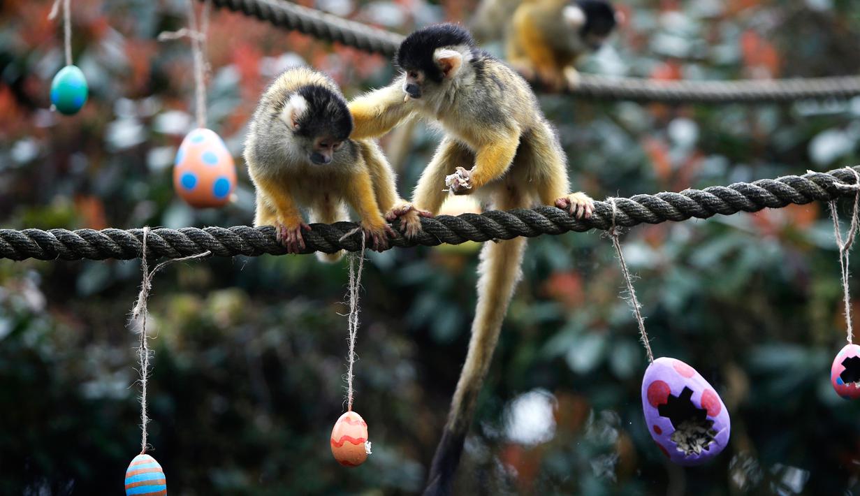 Foto Tingkah Lucu Monyet Tupai Saat Berebut Hadiah Telur Paskah