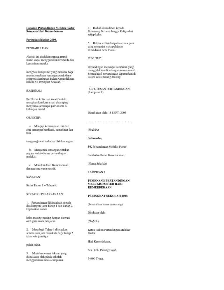 Laporan Pertandingan Melukis Poster Sempena Hari Kemerdekaan