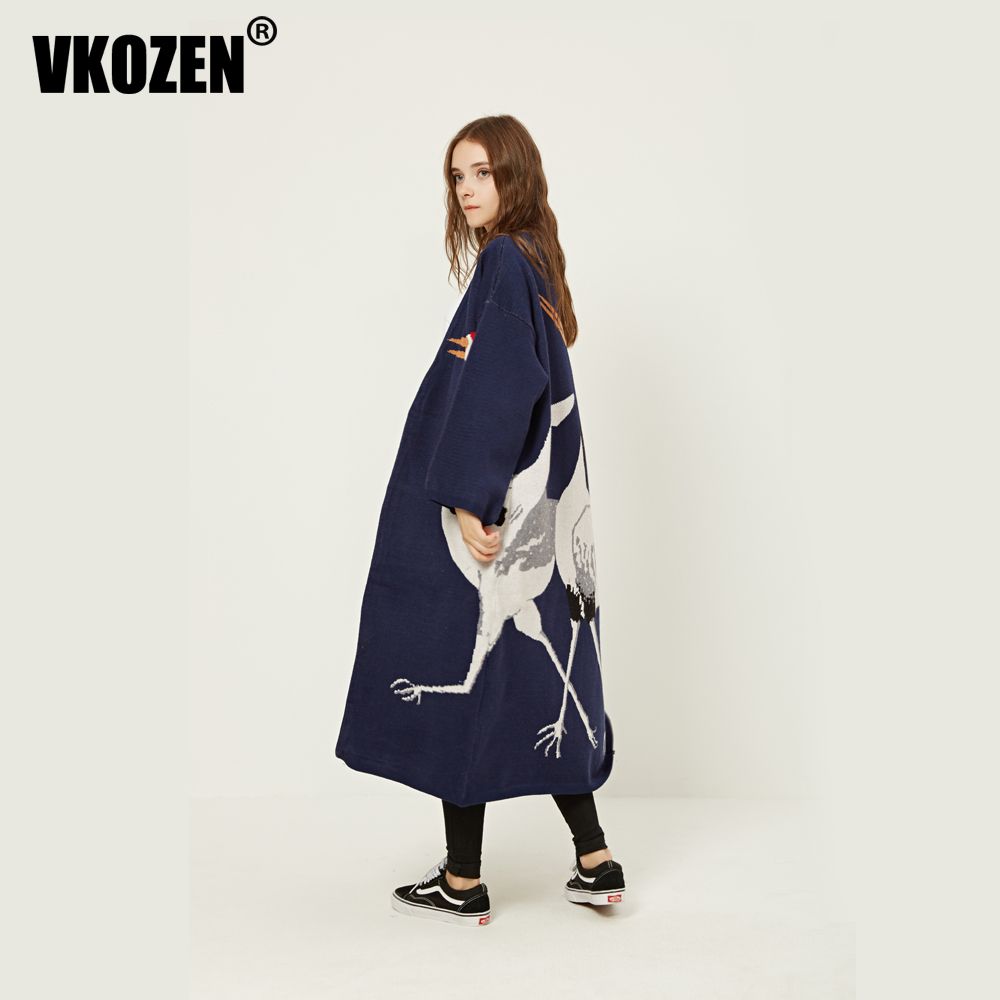 2019 2017 New Women Cranes Pattern Knitted Cardigan Loose Open