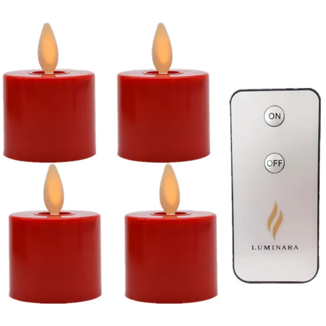 4 Pcs Luminara Baterai Dioperasikan Bergerak Sumbu Merah Flameless