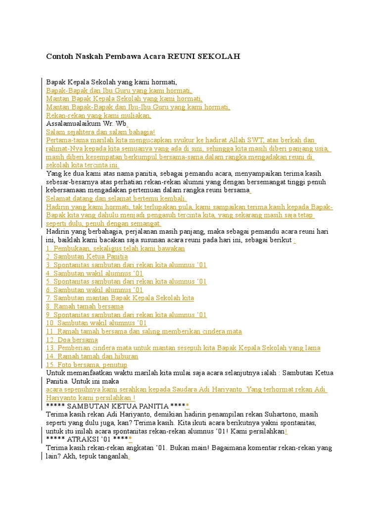 Contoh Naskah Pembawa Acara Reuni Sekolah
