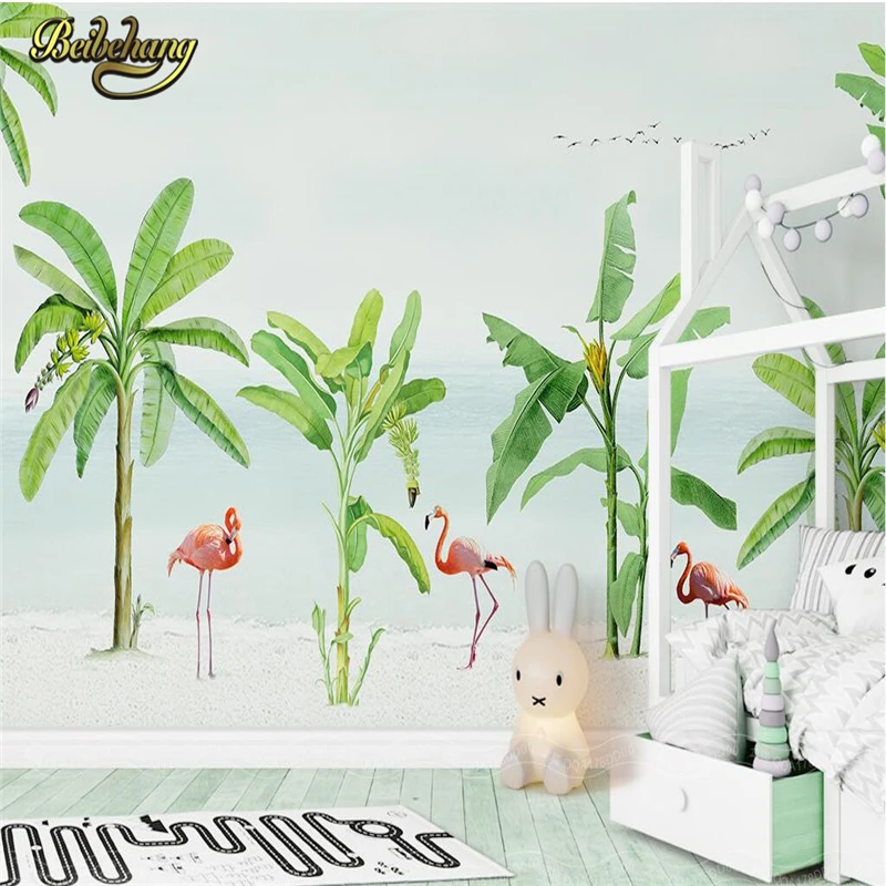 Beibehang Pantai Pohon Pisang Flamingo Kustom Foto Mural Wallpaper