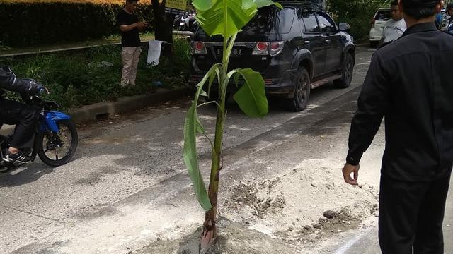 Masyarakat Marah Jalan Rusak Ditanami Pohon Pisang Waspada Online