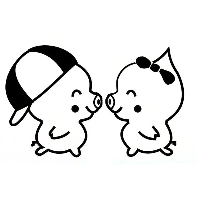15 3x9 8cm Two Little Pigs Cartoon Funny Vinyl Car Stickers