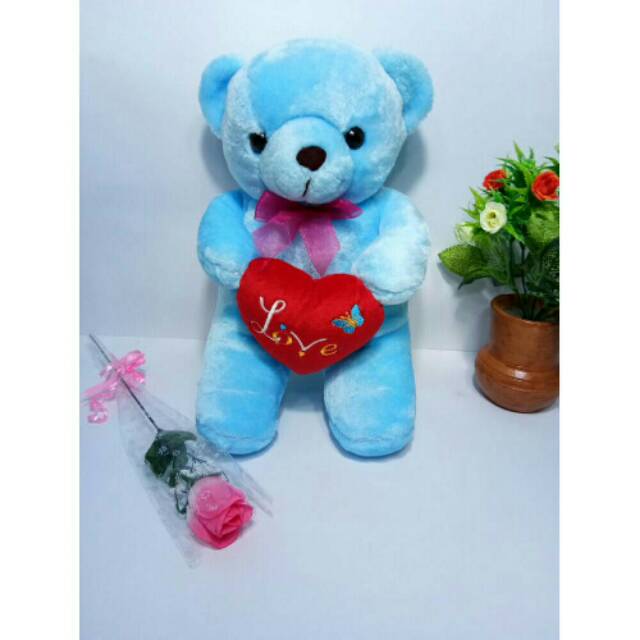 Boneka Teddy Bear Love Bahan Halus Boneka Beruang Love Ukuran 30