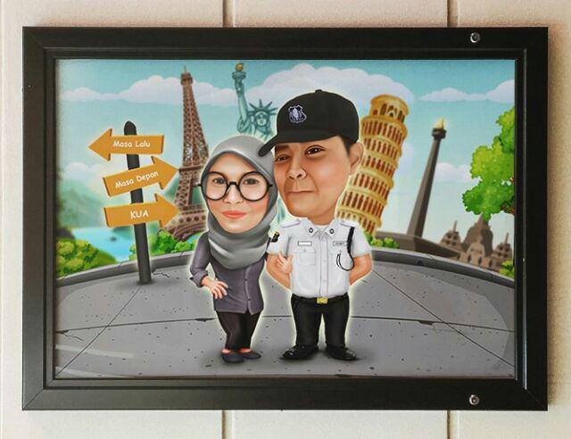 Kado Pernikahan Karikatur 2 Wajah Couple Bingkai 21x30 Cm Unik