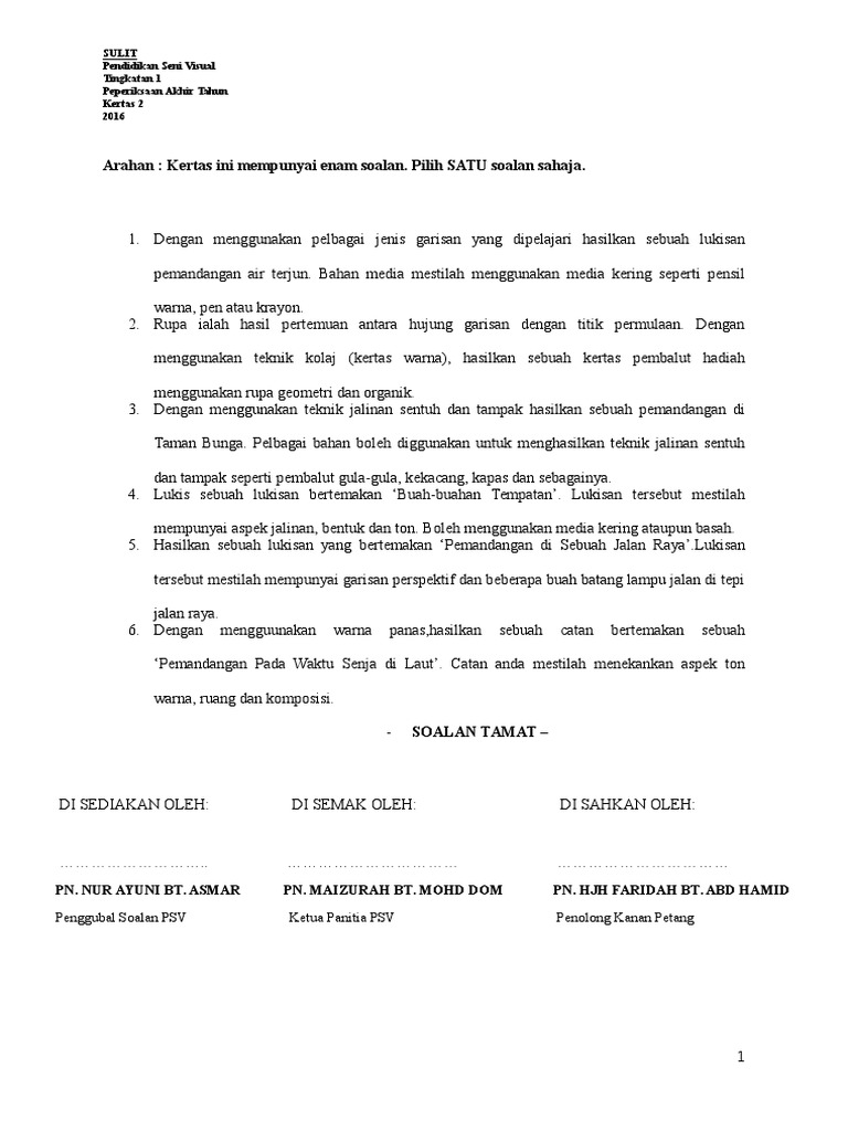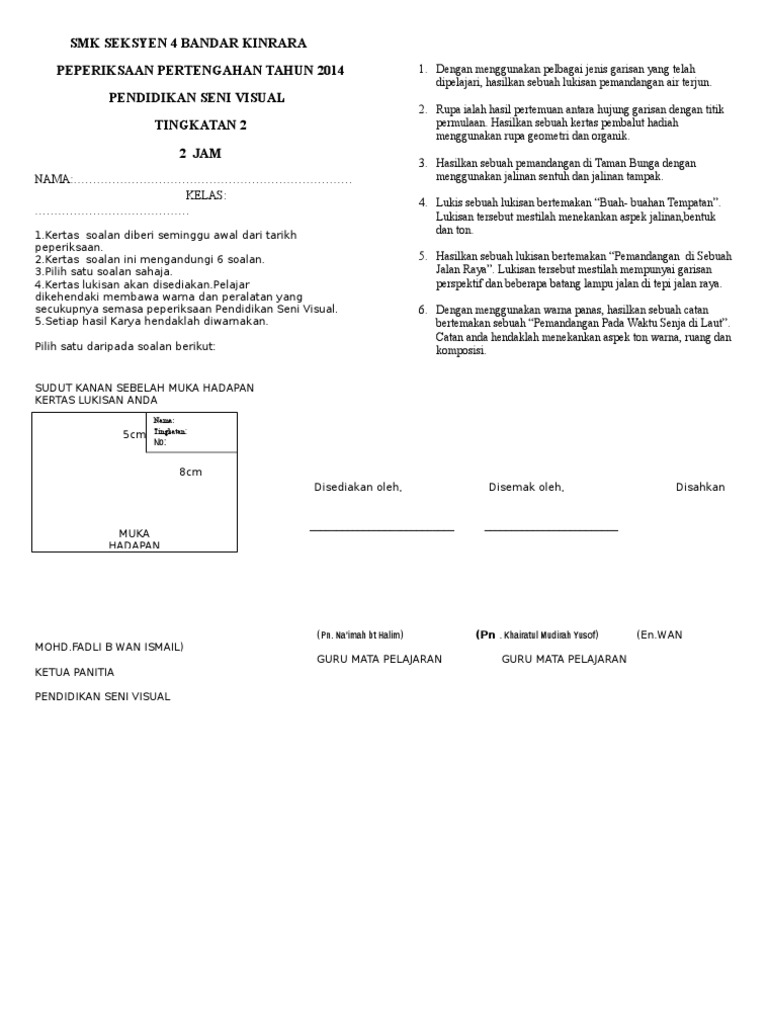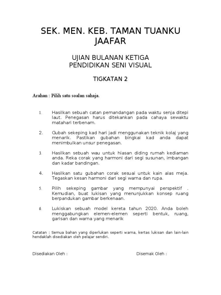 Soalan Ujian 2 Psv Kertas 2 Untuk Tingkatan 1