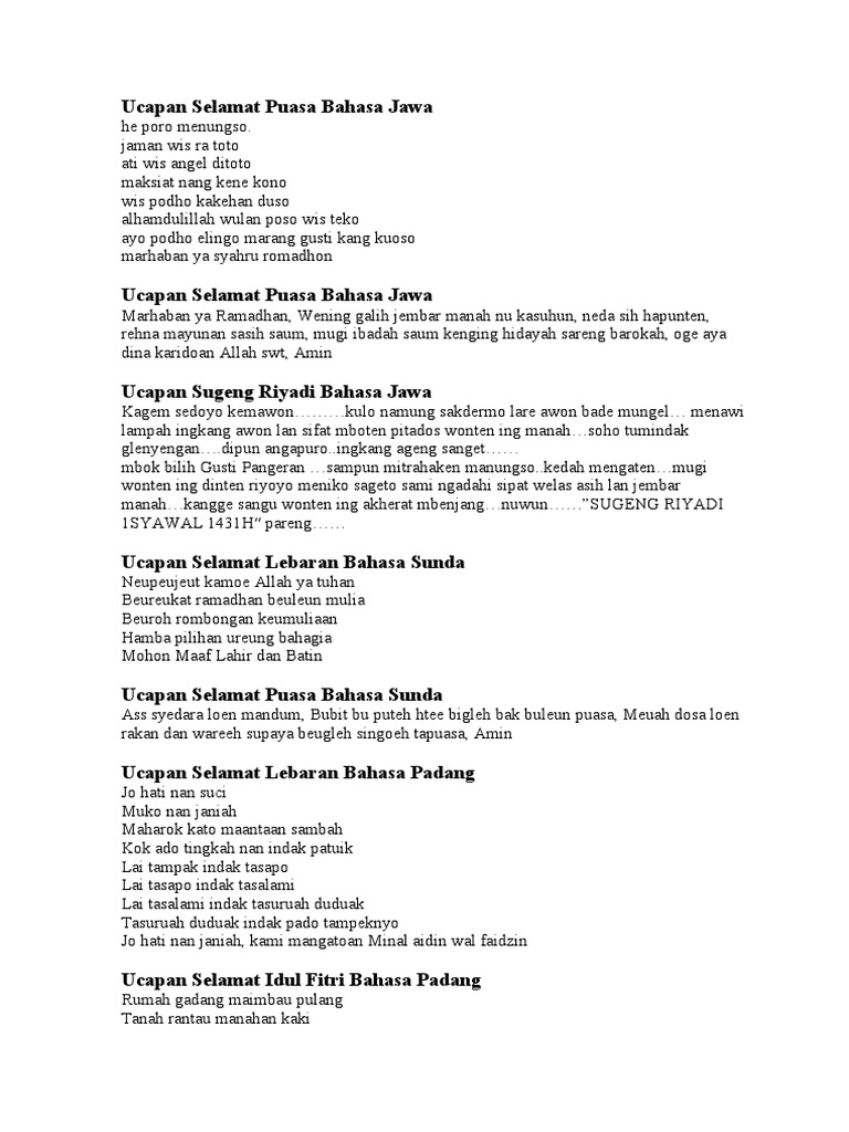 Sms Lebaran Dalam Bahasa Daerah Ucapan Selamat Lebaran Bahasa