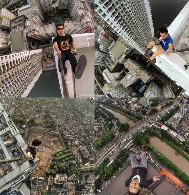 Astaga Pria Ini Nekat Selfie Menantang Maut Di Puncak Gedung Jakarta