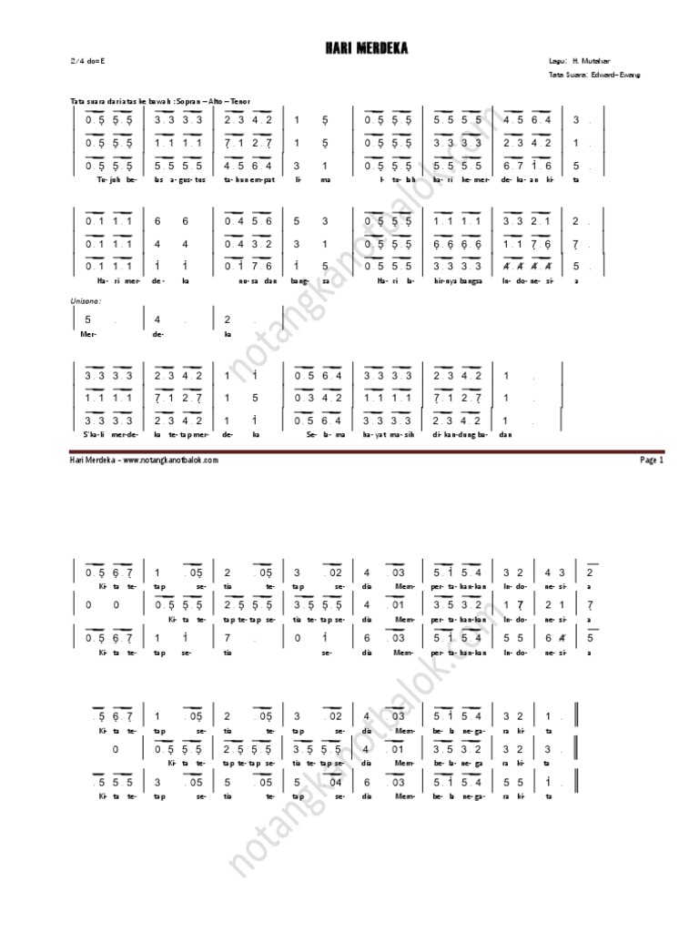 Hari Merdeka Partitur Lagu Nasional Indonesia