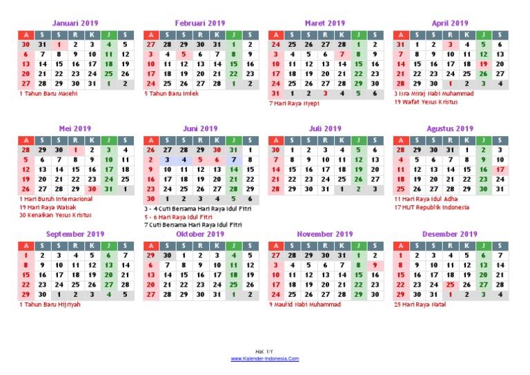Indonesia Kalender Tahun 2019 Kalender Hari Liburan