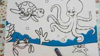 Cara Menggambar Dan Mewarnai Pemandangan Bawah Laut Youtube
