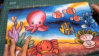 Cara Mewarnai Gradasi Pemandangan Bawah Laut Dengan Oilpastel