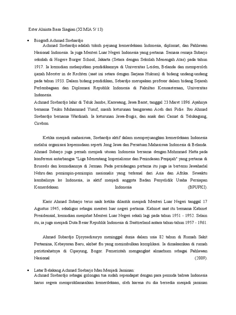 Doc Biografi Achmad Soebardjo Lulu Mutiyah Academia Edu