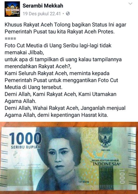 Hasut Cut Meutia Digambarkan Tidak Berjilbab Dan Mirip Cina Di Uang