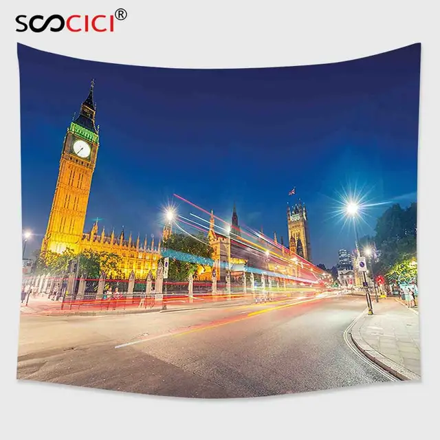Cutom Permadani Dinding Gantung Perkotaan Pemandangan Malam Big Ben