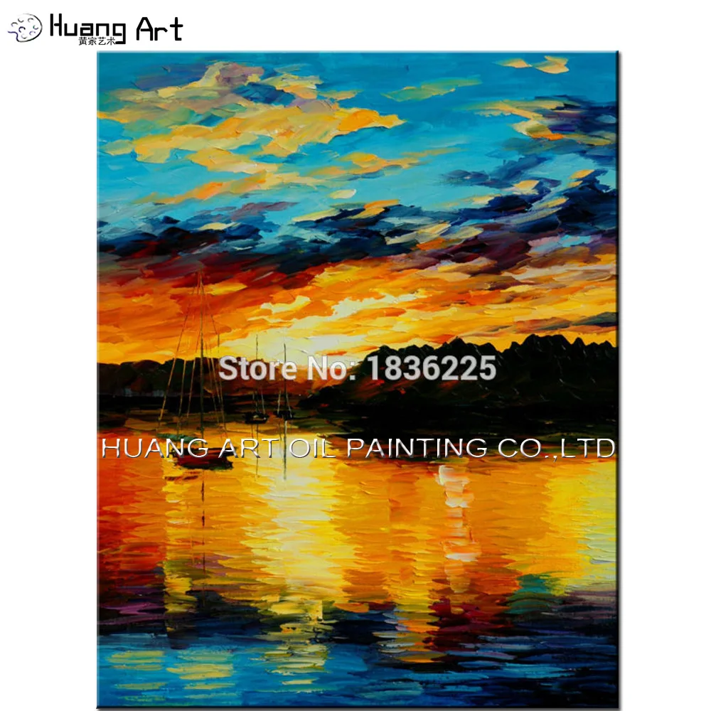 Pemandangan Lukisan Handmade Laut Dan Boat Sunset Landscape Oil On