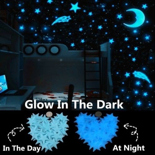 100 Pcs Bag Gglow Dalam Gelap Bintang Dan Bulan Stiker Dinding Yang