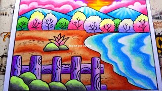 Cara Menggambar Pemandangan Sawah Dengan Cat Oil Pastels