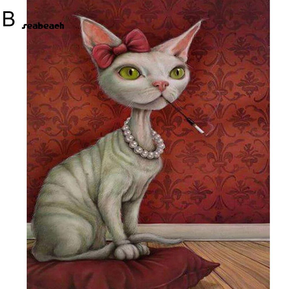 Hot Diy 5d Diamond Embroidery Painting Cross Stitch Kit Cat Animal