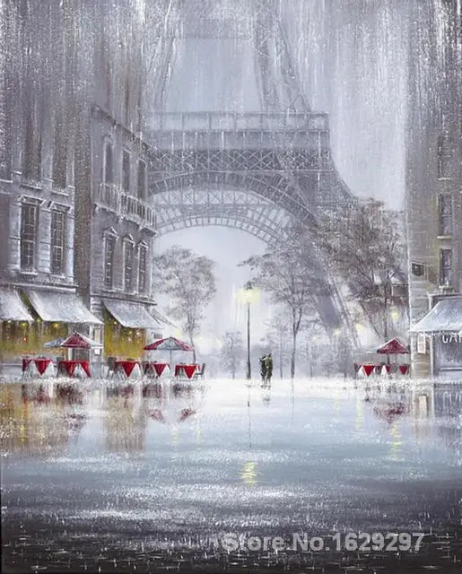 Modern Lukisan Pemandangan Brent Lynch Musim Hujan Di Paris Tangan