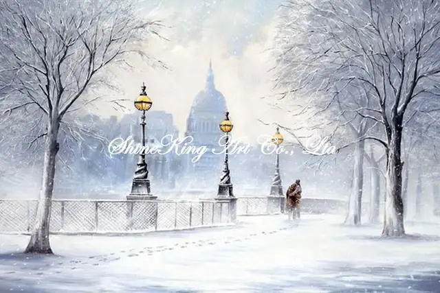 Handmade Landscape Impresionis Lukisan Minyak Di Atas Kanvas Salju