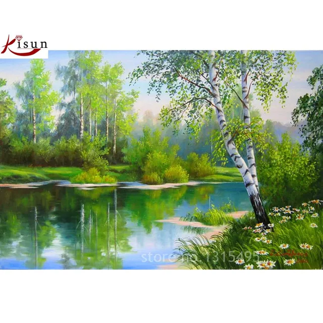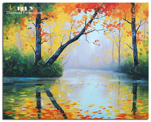 Persegi Berlian Lukisan Pemandangan Sungai Gunung Diy Berlian Bordir
