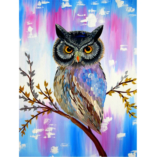 Hot Sale Burung Hantu Di Pohon Needlework Diy Gambar Berlian