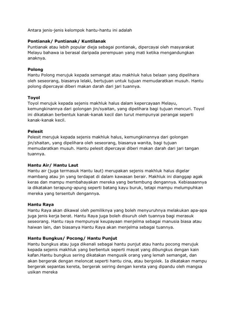 Hantu Menurut Pandangan Masyarakat Melayu Madinatul Asrar
